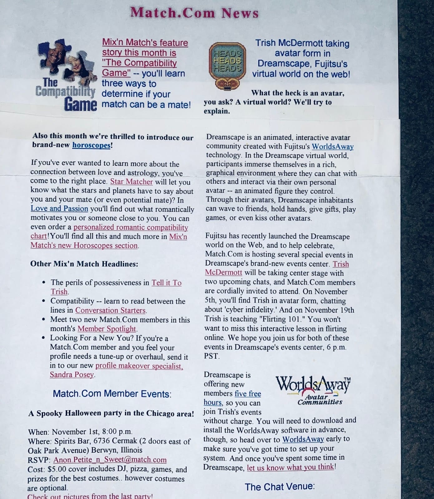 How did the match.com collaboration end up working out? It’s mentioned in archived internal development e-mails that Match agreed to do events in conjunction with WA for 3 months and I wonder what happened after that.
