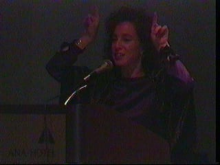 Wendy Sue presenting WorldsAway at the Avatars 97 conference in San Francisco